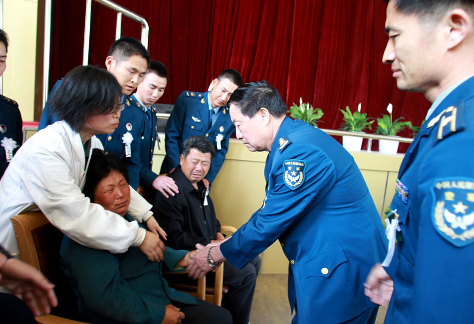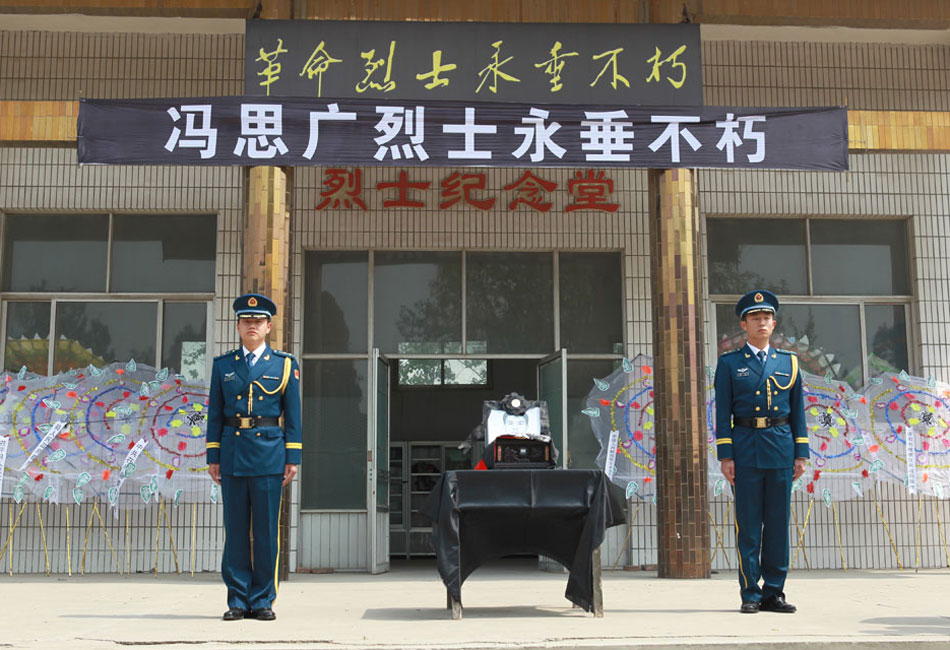 说明:5月12日,济空航空兵某师官兵为冯思广烈士送行。