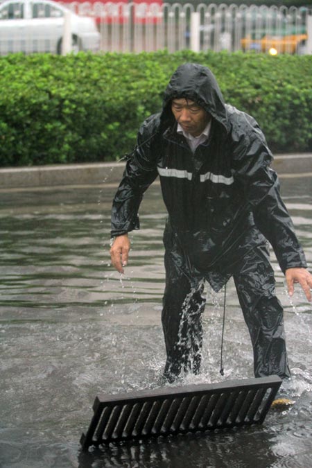 点击浏览详图 (相册号:100031) | | 标题:一位清洁工人清理堵塞的排水孔 | | 说明:2012年7月21日下午2点40,北京海淀区白颐路上(中国空间技术研究院附近),一位清洁工人清理堵塞的排水孔。 |