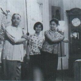说明:尚小云向孙明珠(右一)等传授《峨嵋剑》照。
