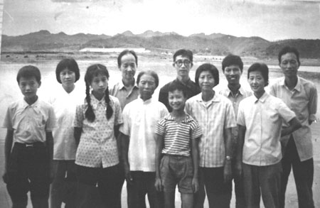 说明:1982年夏天,南昌祖刚三舅及舅妈来屯时,众亲友在隆阜河边合影。