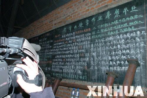 2005年12月8日,一名记者在拍摄刘官屯煤矿的黑板报(收藏于2006/6/20 13:27:22