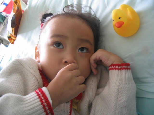标题:倩倩睡着了,妈妈望着窗外百感交集