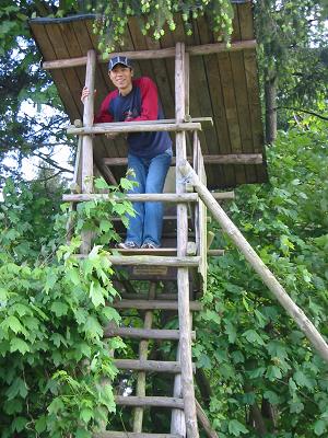 说明:德国乡间小路边树屋,只有DEDE爬上去了。