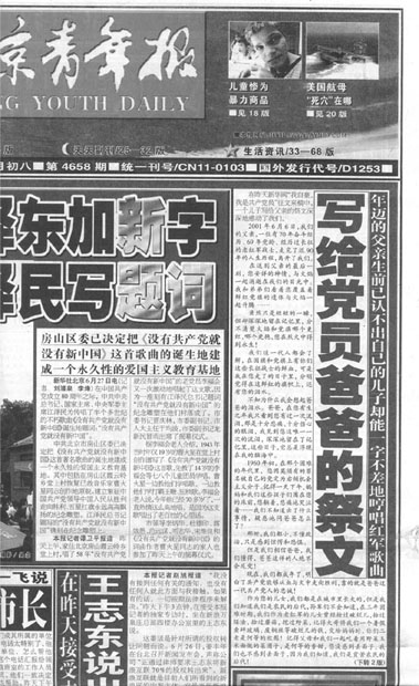 标题:发表在北京青年报祭奠您的文章