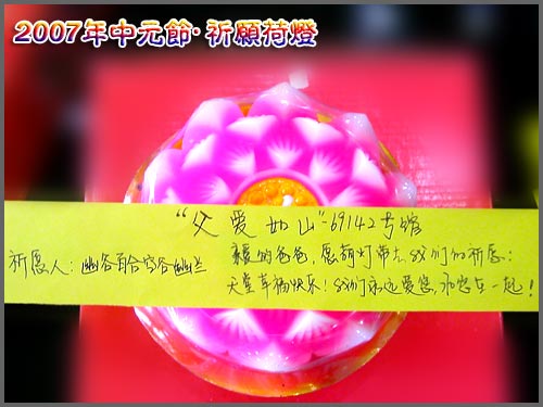 说明:祈愿寄语:亲爱的爸爸,愿荷灯带去我们的祈愿:天堂幸福快乐!我们永远爱你,和你在一起!