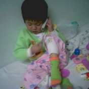 点击浏览详图 (相册号:84529) | | 标题:芸芸在开心地与表哥进行最后一次的通话 | | 说明:2006年11月26日晚六点,芸芸在开心地与她心中的王子_表哥,进行最后一次的通话,瞧她多专注,多高兴啊,不到四周岁的孩子可能也感到了死神的逼近,她交待表哥今后要好好读书.要想着她 |