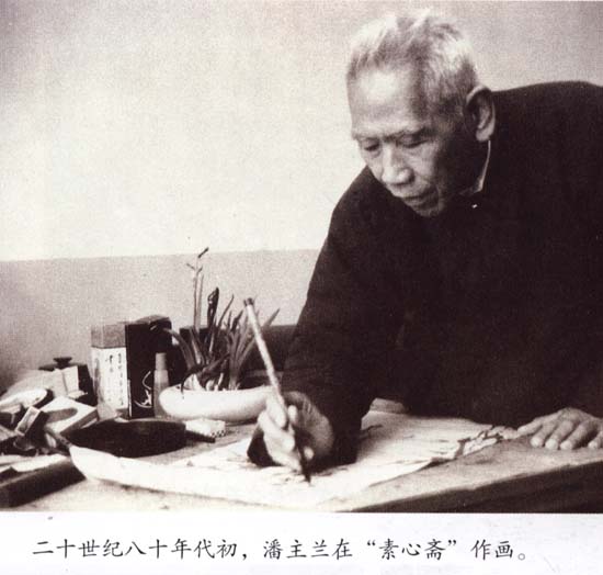 二十世纪八十年代初,潘主兰先生在“素心斋”作画。