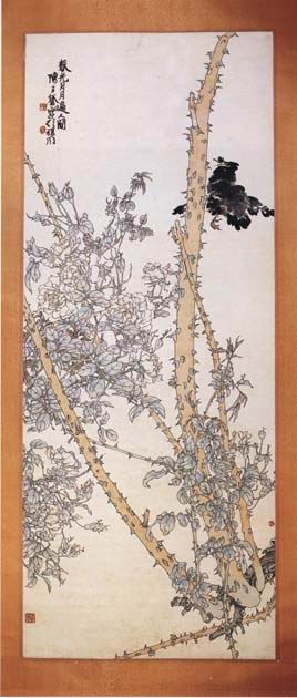 1959年,为庆祝建国10周年,陈子奋先生用四尺宣纸创作一幅《春光日月遍人间》。画的内容是别名为“月月红”的月季花,寓意日子月月红。