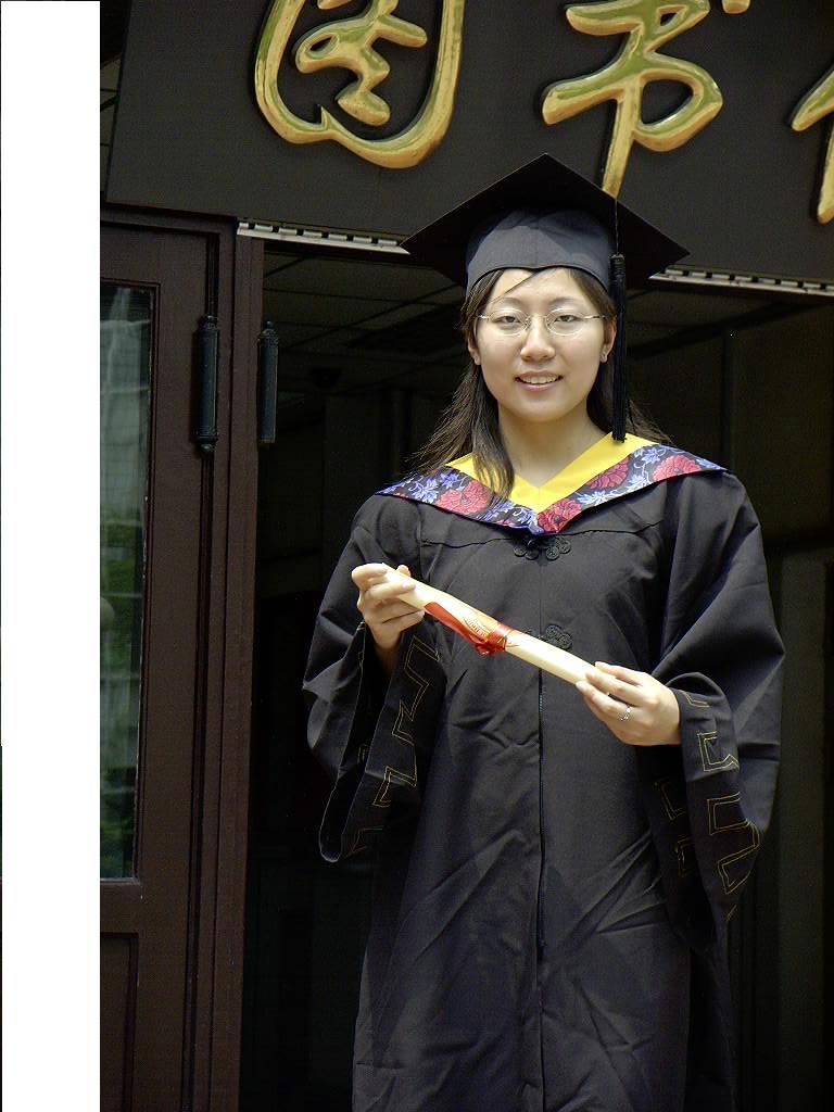 太太,我大学毕业了,这是毕业典礼那天,我穿着学士服,带着学士帽照的相片。您看我精神吗?