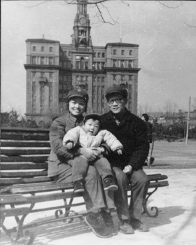 73年春节回沪探亲,与丈夫及孩子摄于上海人民公园。