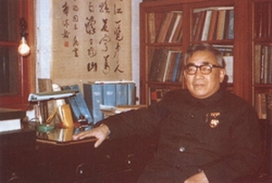 1979年参加全国劳模大会归来胸佩劳模奖章在书房留影。