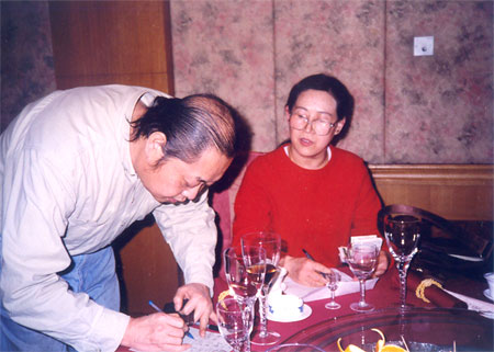 2002年2月17日在同事的聚会上为身患绝症的张大力捐款