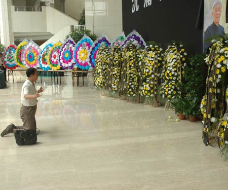 季老灵堂内,一位中年男子长跪不起